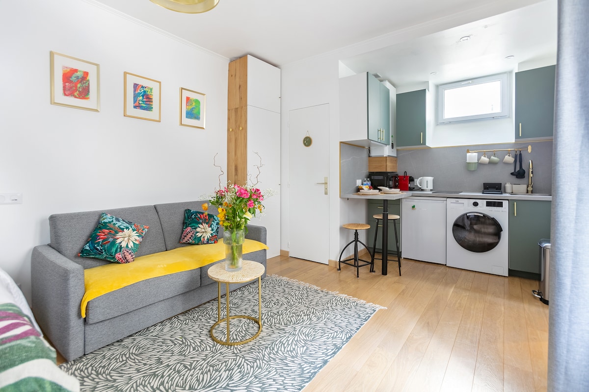 Charming 18 m² studio 5 min from the Louvre🖼️, ideal for 2 guests. It has 2 modular single beds (separated for friends/roommates or combined as a double bed for couples💕), a fully-equipped kitchen, fast Wi-Fi and a convenient bathroom. Located on the 1st floor of a beautiful old building (easy stairs, no elevator), it offers comfort and authenticity in the heart of a lively neighborhood, close to cafes, restaurants and shops ✨