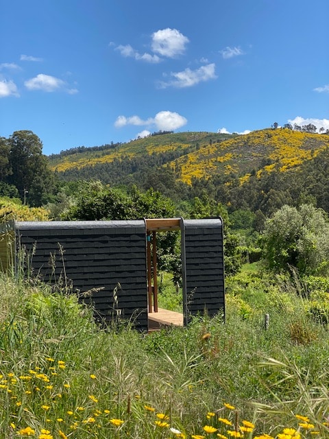 Our 2 Tiny houses bring you the comfort of a traditional home while allowing you to be in contact with nature, the view and the spring water that flows next door. The pool is a private spring water reservoir near the house and a larger, higher one. You cook and eat on the terrace. You wake up and have a view of the hills while hearing the birds chirping and the spring flowing. 15 minutes from Monçao and 30 minutes from Pinera Géres Park.
