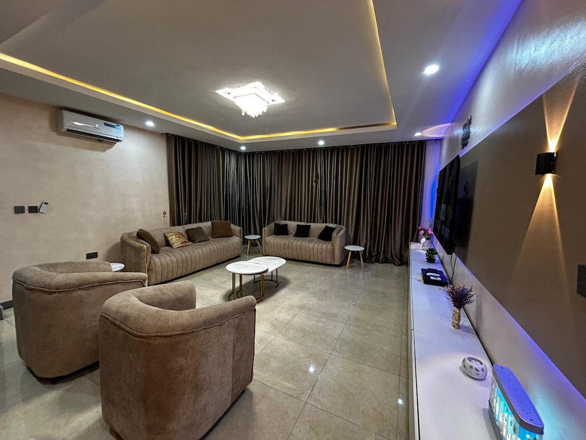 This luxury 4bedroom, 5bathroom apartment in the heart of Abeokuta is the perfect blend of comfort & elegance. Each bedroom is ensuite, giving you privacy during your stay. The living space is cozy yet stylish, while the entertainment options make it hard to ever want to leave. Enjoy a snooker board, soccer board & PS5 for endless excitement. With unlimited WiFi, a generator & an inverter, you’ll always stay connected. This apartment offers everything you need for a memorable stay in Abeokuta.