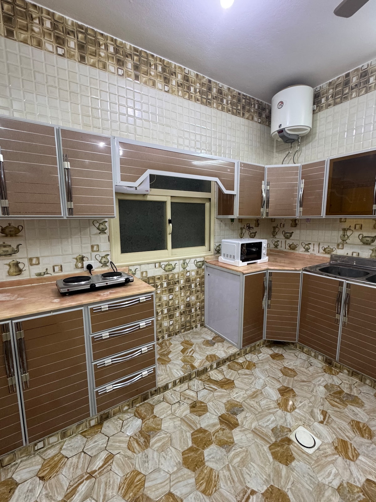 A luxurious apartment with a modern design and style, consisting of two bedrooms, a hall, a bathroom, a coffee corner, a small refrigerator, a microwave and a vacuum cleaner (all electrical appliances). Its location is near the water tank, close to services, a mosque in front of the apartment and a mosque in the back - Riyadh Road and National Life Hospital) and groceries - laundries - restaurants and close to the waves of Mall and Riyadh walkway