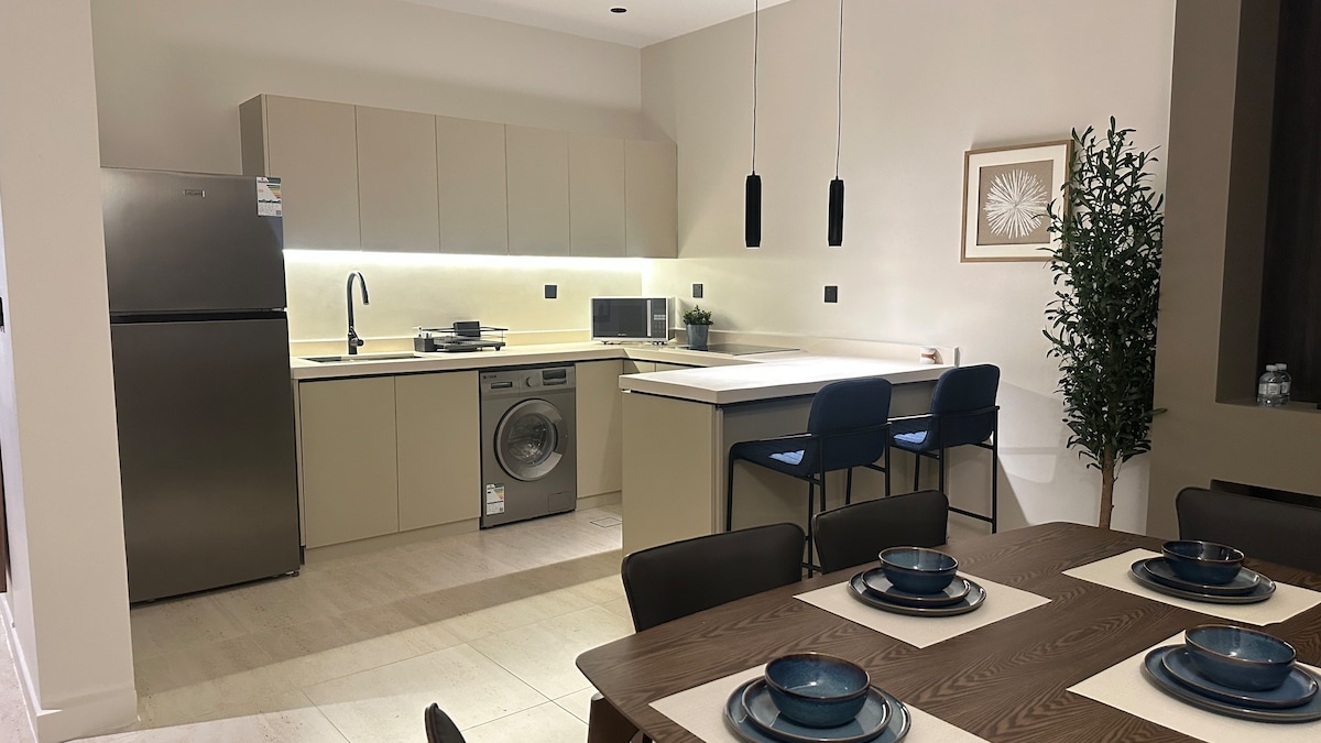 The whole group will be comfortable in this spacious and unique space. It’s near to the best malls, entertainments, corniche & sea walk. The apartment is fully furnished & serviced. The location is 20 mins away from the Airport and less than a 5 minutes walking distance from the beach & shopping malls. There are neighbors around and might get exposed to sounds.