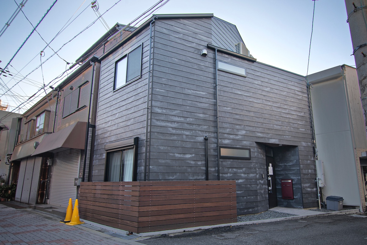 Welcome to Nami no Yado🏡 Located in the heart of Osaka, near Japan's tallest building, Tennoji Abeno Harukas, and the famous Osaka Tsutenkaku! 3 min walk from Abusumachi Station on Osaka Kansai Airport Line! 8 minutes walk to subway Midosuji line to Namba, Shinsaibashi, Umeda and other commercial shopping centers! Osaka Universal Studios, Nara Deer Park, Kyoto Temples, Wakayama Hot Springs are♨️ all very convenient and can be visited in the same day! Newly built single-family villa, can accommodate 1-8 people, there are three large supermarkets, drug stores, food stores, Japanese restaurants, and the teamLab light art interpretation of Chuangzhu Park, which is famous throughout Japan! About 10 minutes walk from the house! Perfect for a few friends, a big family or two small families traveling together! Welcome to Hyodo Housing🏡