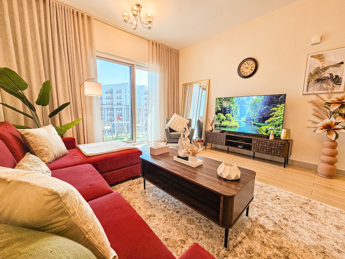 🏆Super Host for the Past 5 consecutive Evaluations! Welcome to my personally managed haven, where I ensure a memorable stay with top-quality service and prompt responses - no third-party companies involved! Enjoy a cozy, nature-inspired apartment minutes from Yas Island, Ferrari World, Yas Mall, beaches, Etihad Arena, Warner Bros, SeaWorld, airport, and Abu Dhabi attractions with fast Wi-Fi, gym, heated pool, private balcony, free parking, fully-equipped kitchen, and dedicated workspace.
