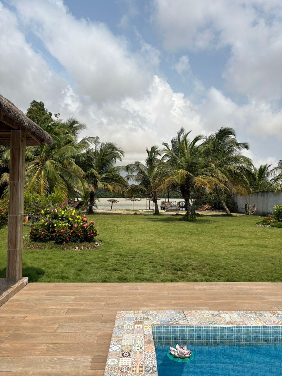 This peaceful accommodation offers a relaxing stay for the whole family. Villa Atmosphère is located at the entrance to Assinie at Km 4.5. Your stay in a secure villa that offers high-quality amenities with its American kitchen, spacious and bright rooms. Its uniqueness lies in its outdoor rooms; its large covered terrace overlooking the lagoon, its wide pontoon foot in the water, its private beach as well as its solarium at the level of its large swimming pool.