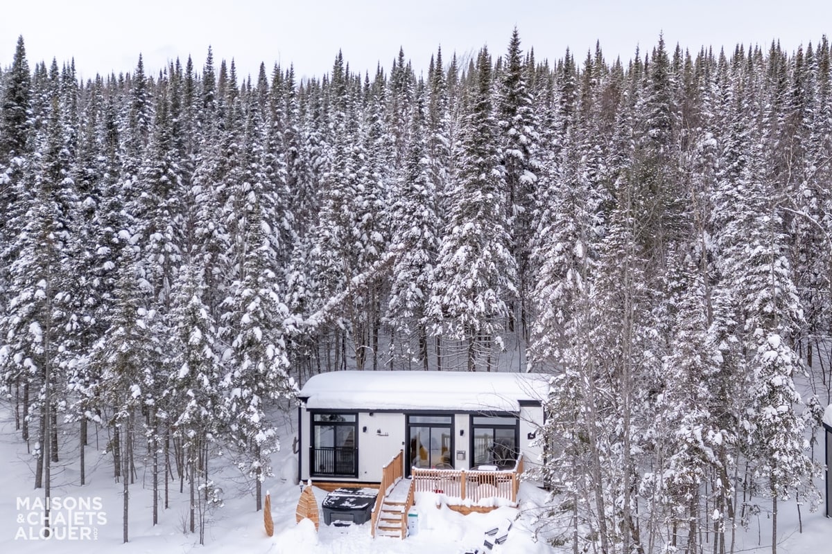Welcome to Hygge Hytte! This Scandinavian-inspired chalet combines elegant design with exceptional comfort that blends seamlessly with the environment. The natural lighting offered by the large windows allows exceptional views of the entire Estate. Enjoy the terrace that plunges you into the heart of the undergrowth allowing you to fully immerse yourself in nature.