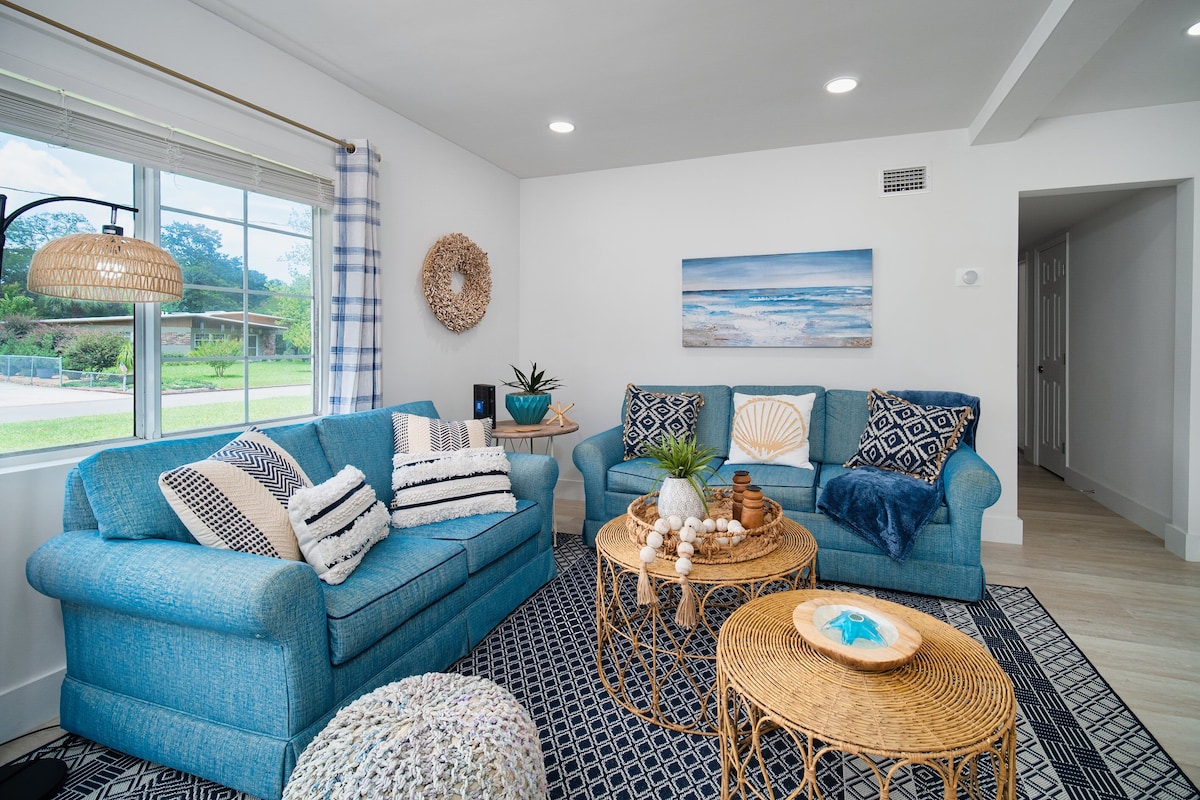 Stay at Seven Palms Retreat on 2nd Avenue in Jacksonville Beach for a quiet getaway. This 2-bedroom, 1-bath home is just 7 blocks from the beach, a quick 5-minute bike ride to the sand. Local shopping, Parks, bowling and restaurants are within walking distance. Sleeps 6 guests with a queen bed, 2 twin beds, and a pull-out full-size sofa bed. Relax by the fire pit on the back paver patio and grill outdoors. Our completely renovated home ensures a clean and welcoming environment for your trip.