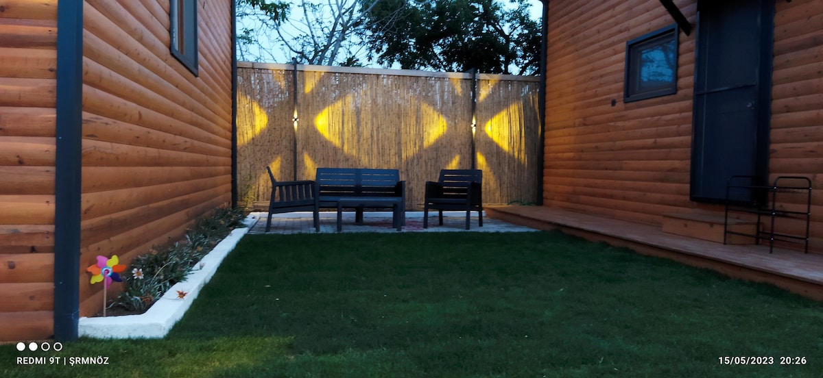 Forget your worries in this spacious and serene place. Forget all the familiar three-generation houses. When you come to our bungalow facility equipped with Russian pines that we specially brought from Russia, we welcome you with a fragrant tree smell and wish you a peaceful holiday with all its spaciousness, and the walking distance to the sea is 1 minute :)