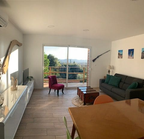 We have signed the AirB&B charter for disinfection standards, and we scrupulously respect the steps. Long-term stays are accepted from November 2023 to March 2024 Nice little 2-room apartment, with its private terrace, flowers and BBQ. Furnished in industrial style. air conditioning. small, very well-equipped kitchen, oven, microwave, washing machine and dishwasher. everything you need for a pleasant stay in Corsica.