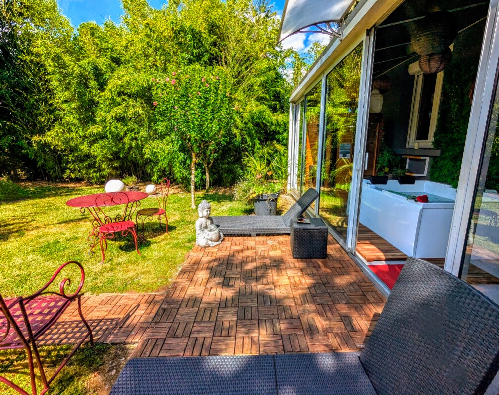 ou'll have a great time at this comfortable place to stay. Detached house, 30 m2, with all its comforts. Come and relax for 2 in its private jacuzzi. Bathrobes, towels and sheets are provided. Relax on the deckchairs. Fully enclosed garden. Bikes at your disposal.