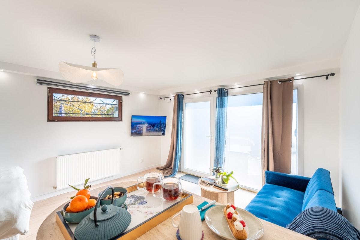 33 m2 studio with a large balcony on the Thiou Canal, perfect for breakfast or for an aperitif at the end of the day. The accommodation is quiet, discreet and close to many activities (5 min walk to the lake, castle, etc.). In the heart of Annecy's old town you can eat in one of the many good restaurants or enjoy an ice cream in an ice cream parlor (the best being the Glacier des Alpes). For accessibility, the apartment is an 8-minute walk from the train station.