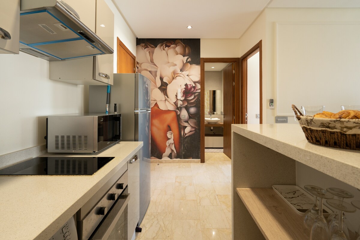 Favorite Enjoy your stay in this peaceful, brand new, clean and comfortable apartment, ideal for business trips and sightseeing, perfect for couples. Located in the heart of Casablanca, everything is within easy reach, and the tram station is only a 1-minute walk away. The apartment has a comfortable bedroom, impeccable bathroom, fully equipped kitchen and bright living room with large screen TV and two balcony terraces.