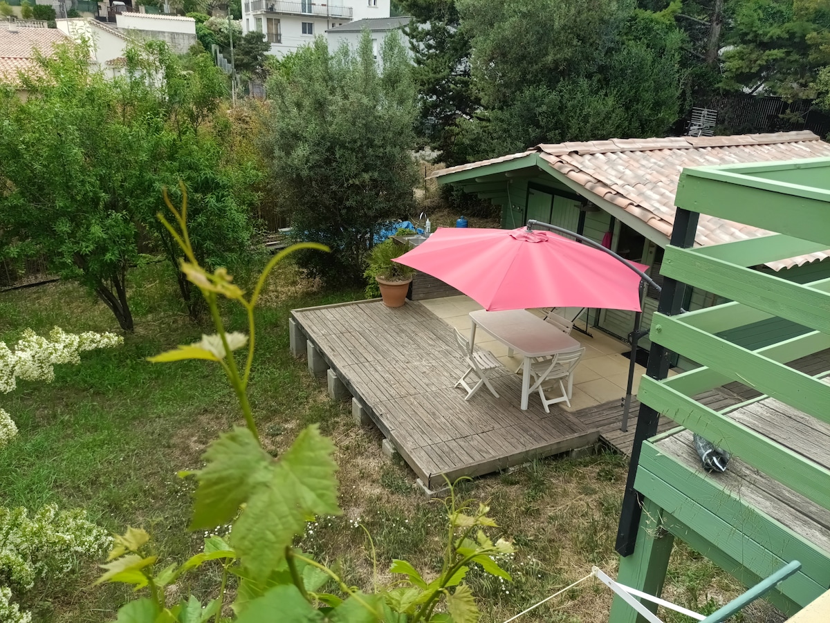 Wooden chalet, air conditioning, view, 20 min to Cassis, Aix-en-Provence, Marseille