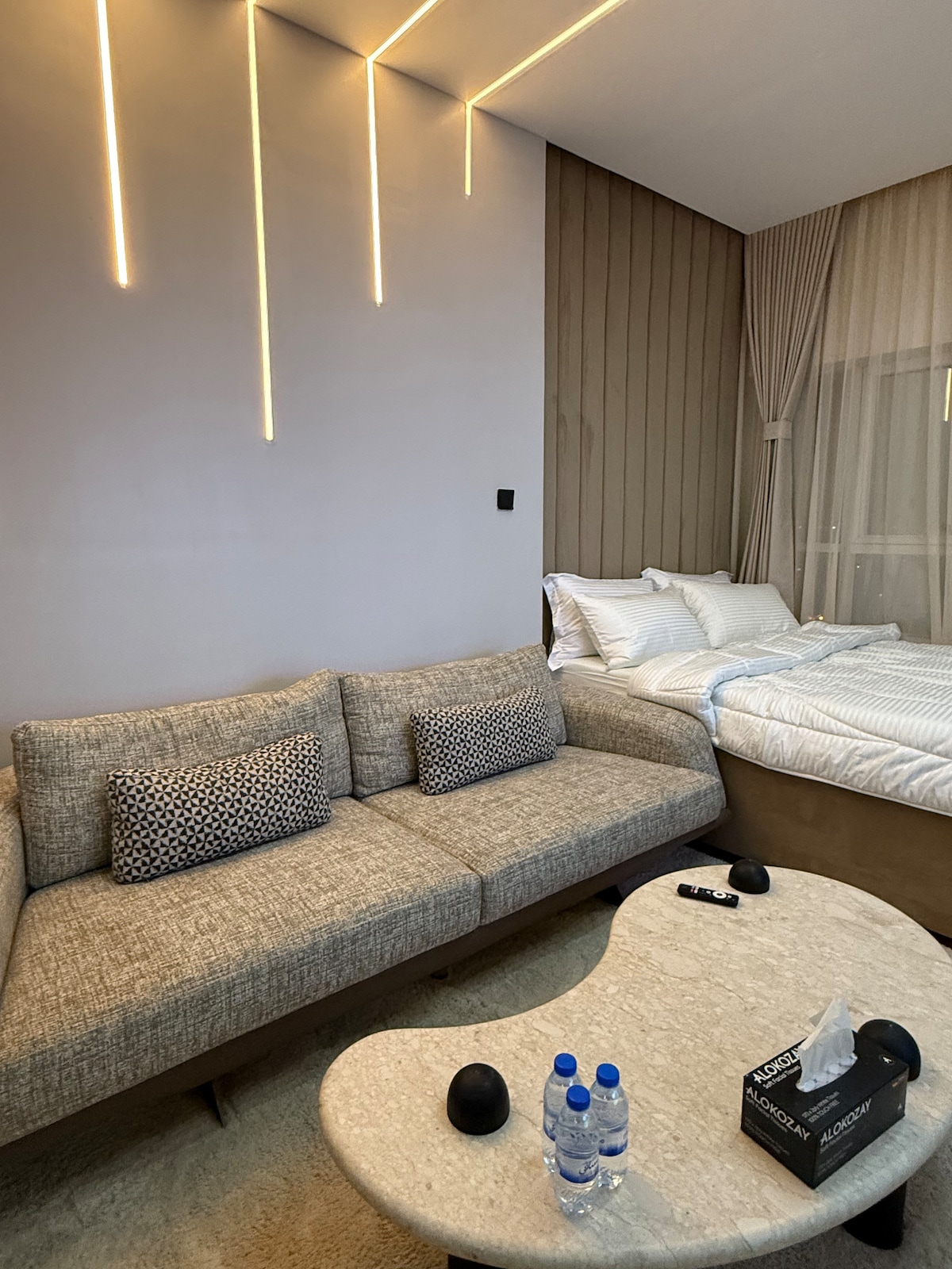 Welcome to our chic studio in Zahia! Perfect for solo travelers or couples, this modern space features a comfy bed, fully equipped kitchenette, and spacious bathroom. Enjoy high-speed Wi-Fi, a flat-screen TV, and air conditioning. Located in a vibrant area with easy access to shops, cafes, and transport. Book now for a comfortable and convenient stay!
