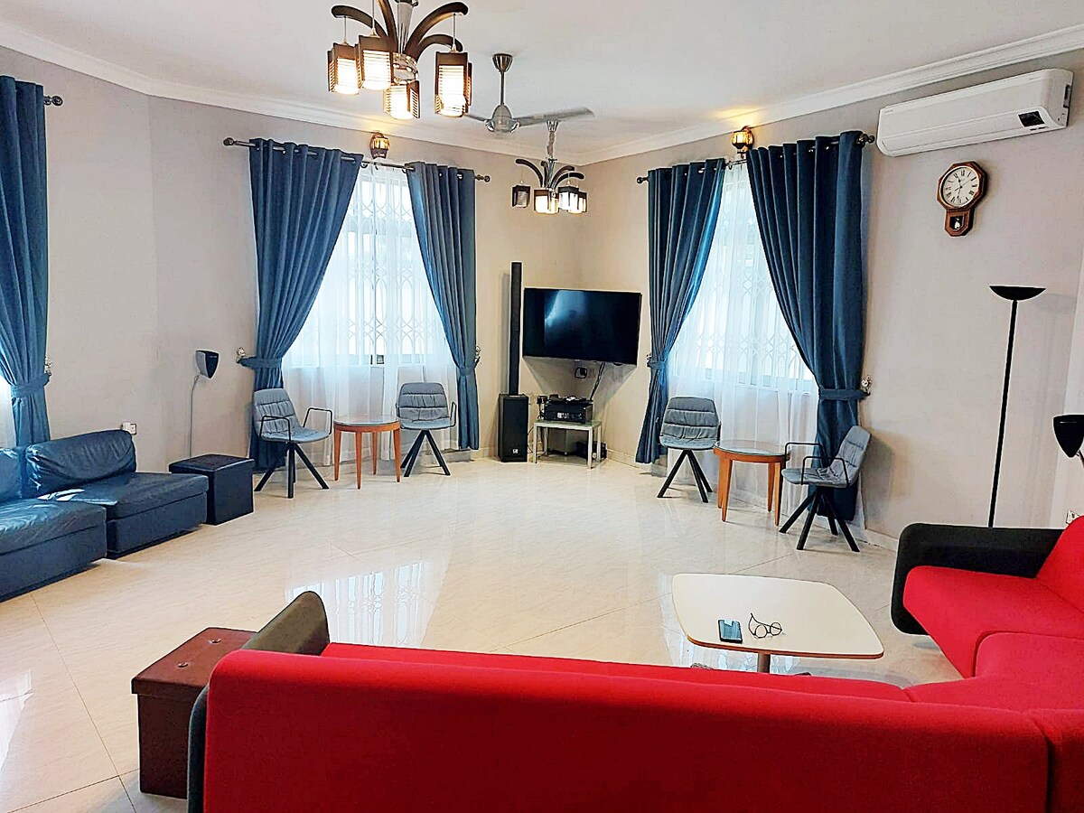 Lets make memories with this unique and family-friendly place. The property boasts of ample space open floor Cathedral HIGH ceiling Beam modern ranch design with a rooftop patio. The property is secured with High electric fence with automatic gate opener. Each bedroom has its own private full bathroom and a guest washroom. All tared roads from Airport to the villa (35 minutes drive) in the Botanical Gardens of Aburi, very close to the National Fire Service.