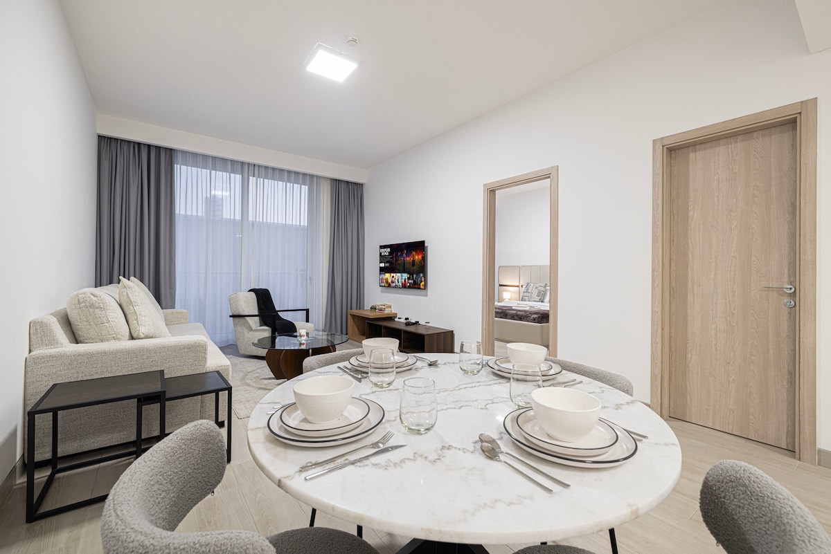 Welcome to your bright and modern 1-bedroom apartment in the heart of Jumeirah Village Circle – perfect for couples, solo travelers, business guests, and even small families. Thoughtfully furnished and filled with natural light, this home offers everything you need for a comfortable and relaxing stay. Whether you're visiting for a few days or planning a longer stay, you’ll feel right at home. Kick back and relax in this calm, stylish space.