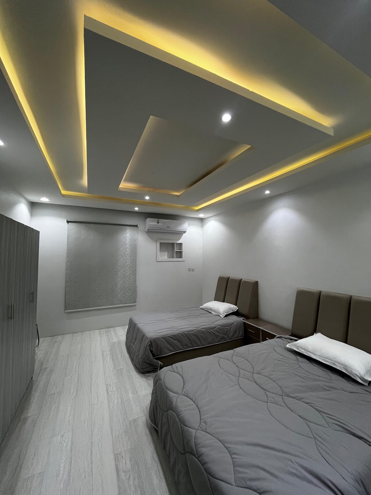 غرفة نوم واسعة وحديثة للإيجار، تحتوي على سرير كوين مريح، كنب، وثلاجة صغيرة. توفر خزانة ملابس وتسريحة للتخزين، وتضم وحدة تكييف، وحمام خاص مجهز بالكامل لإقامة هادئة ومريحة. Spacious, modern bedroom for rent, featuring a cozy queen bed, sofa, and mini fridge. Includes a wardrobe, dresser, split AC, and fully equipped bathroom for a comfortable, relaxing stay.