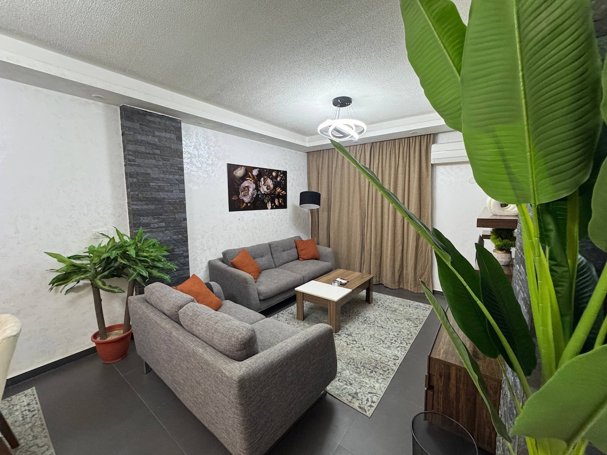 This spacious apartment is fully furnished and equipped with everything you need for a comfortable stay. Relax and watch your favorite movies and TV shows on the sound system with access to Netflix, beIN Sports, Shahid, Watch it, and Starzplay. Located in a central location, close to all the major attractions. Just a short walk for bus station , the shops, and the restaurants. Whether you're traveling for business or pleasure, this modern, stylish apartment is the perfect place to stay.