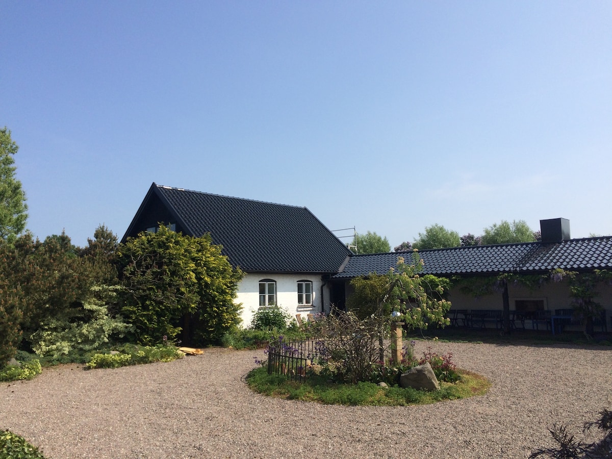 The house is in a quiet and culturally protected area in central Landskrona. Parking can be done in the area, but not free of charge, but costs SEK 2/hour around the clock. The apartment is located on the first floor of a two-family house, where the host couple lives in the apartment above. The area is approximately 74 sqm, divided into kitchen, bathroom, bedroom with double bed and two living rooms, one of which has a sofa bed. The yard is lush and inviting and offers several seating areas.