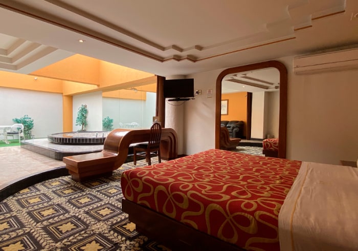 Our suite features a king-size bed, private bathroom, equipped kitchen, breakfast bar in a harmonious and comfortable layout, overlooking the terrace and pool in an exceptional location one block from the CDMX Zocalo, in an area of boutiques such as the Palacio de Hierro that opened its doors in 1891, and jewelry stores. In one day you can visit the Cathedral, National Palace, Palace of Fine Arts, various museums and "El Cardenal" restaurants.