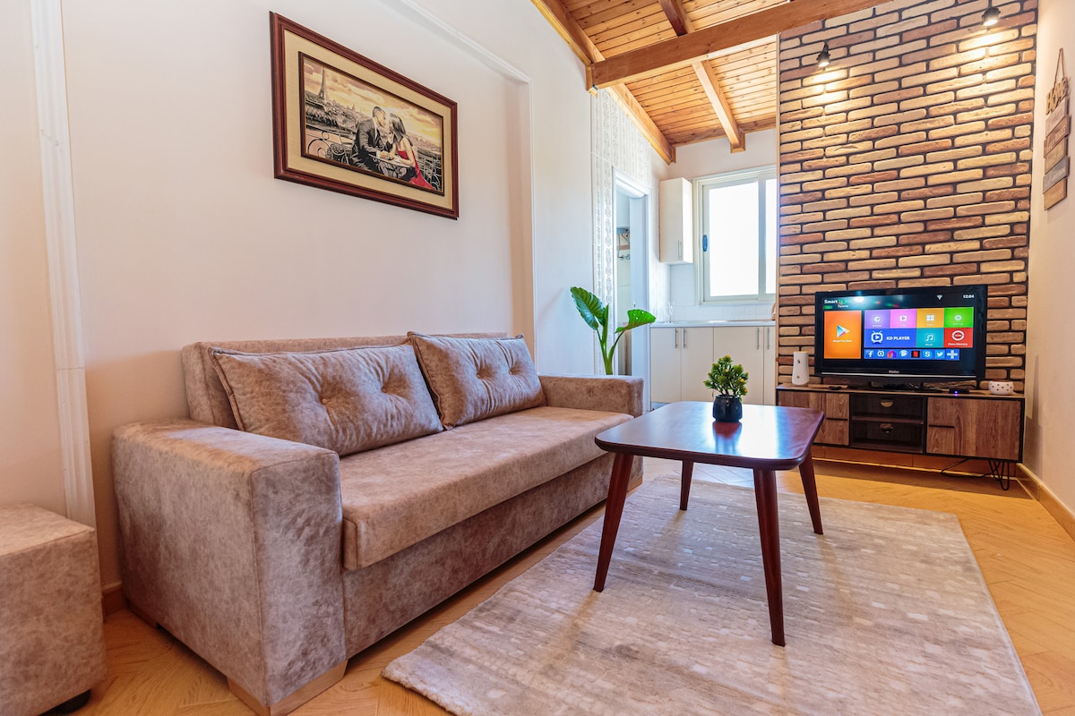 Spacious 60 m² 1+1 apartment in central Tirana, 5 min walk to the city center. Cozy bedroom, living room with 3‑seat sofa, fully equipped kitchen, bathroom, storage, and balcony with mountain views. Located on the 4th floor of an ’80s building without elevator. Antique furniture adds charm. Experienced host with 200+ reviews (4.89). Ideal for couples, small families, or longer stays.