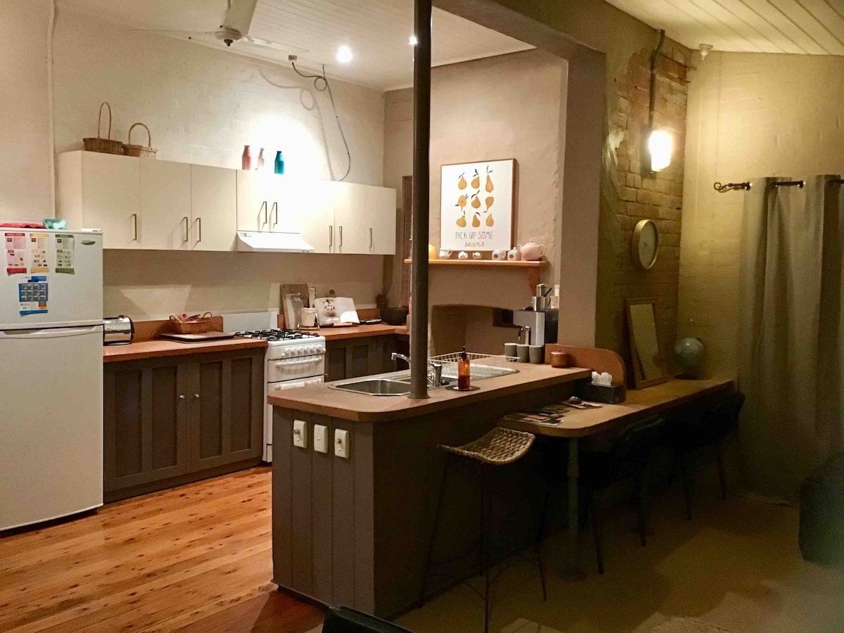 The Tiny House in Rutherglen is not actually that tiny, it has an outdoor deck and bath, and a super cosy bedroom. There's also another deck with a hammock where you can relax under a palm tree. The space is unique with a chilled vibe; think of a cross between Melbourne and Bali. It's a hidden oasis that is only a one-minute walk to all three pubs, wine bars, restaurants and the supermarket. It's quirky and unique and not your typical house, but I love it, and I hope you do too.