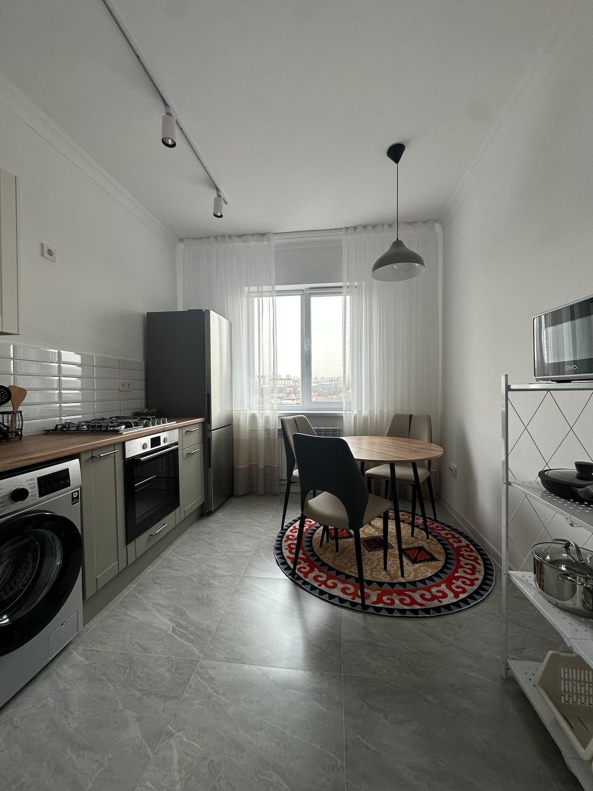 Приглашаю вас в нашу уютную квартиру! . Мы с женой сделали ремонт сами, вложив душу в каждую деталь. Максимальный комфорт, стиль и атмосфера. . Наша гордость — кухня, созданная нами. Удобная кровать с отличным матрасом и мягким подкладом, как в отеле. Большой ТВ, быстрый Wi-Fi и много розеток, всё необходимое и даже больше. . Оживленный район: кафе, супермаркеты, рынок Арыстан. Удобный транспорт, 5–10 минут до метро «Момушулы», легко добраться до центра.