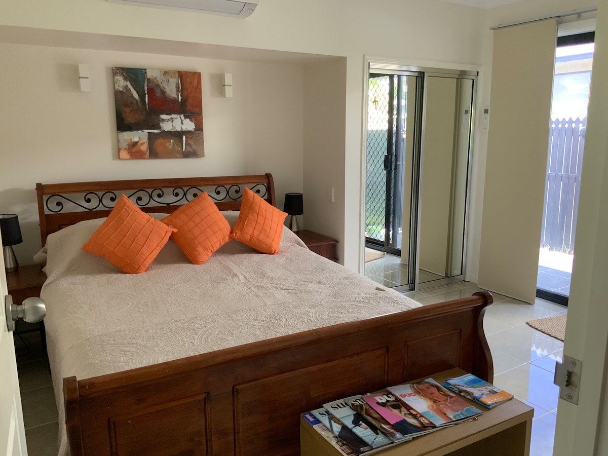 We have a private, self-contained Ground Floor Unit under our home in the quiet, leafy suburb of Mundingburra in Townsville, North Queensland. The Unit is on the ground floor of our home with a shared secure entrance, a heated pool with a deck and on-site parking We are a short walk to nearby Sheriff Park and river walkways The Unit is a 15 min drive to most places in Townsville with bus services available nearby. We have free NBN Wifi. We are pet friendly with a small charge per stay.