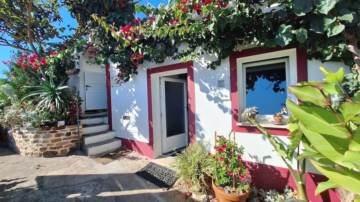 Casinha da Oliveira is located in a small village in a beautiful valley, surrounded by green hills, 4 km from the village of Aljezur. The casinha is a typical Algarve house (one of 3 twin houses), restored using traditional materials and maintaining its rural environment. The house is comfortable, cozy and cheerful, has a bedroom, living room, kitchen, bathroom and a large ground floor terrace, with garden furniture and a grill and overlooking the valley. It has a well-equipped kitchen and Wi-Fi.