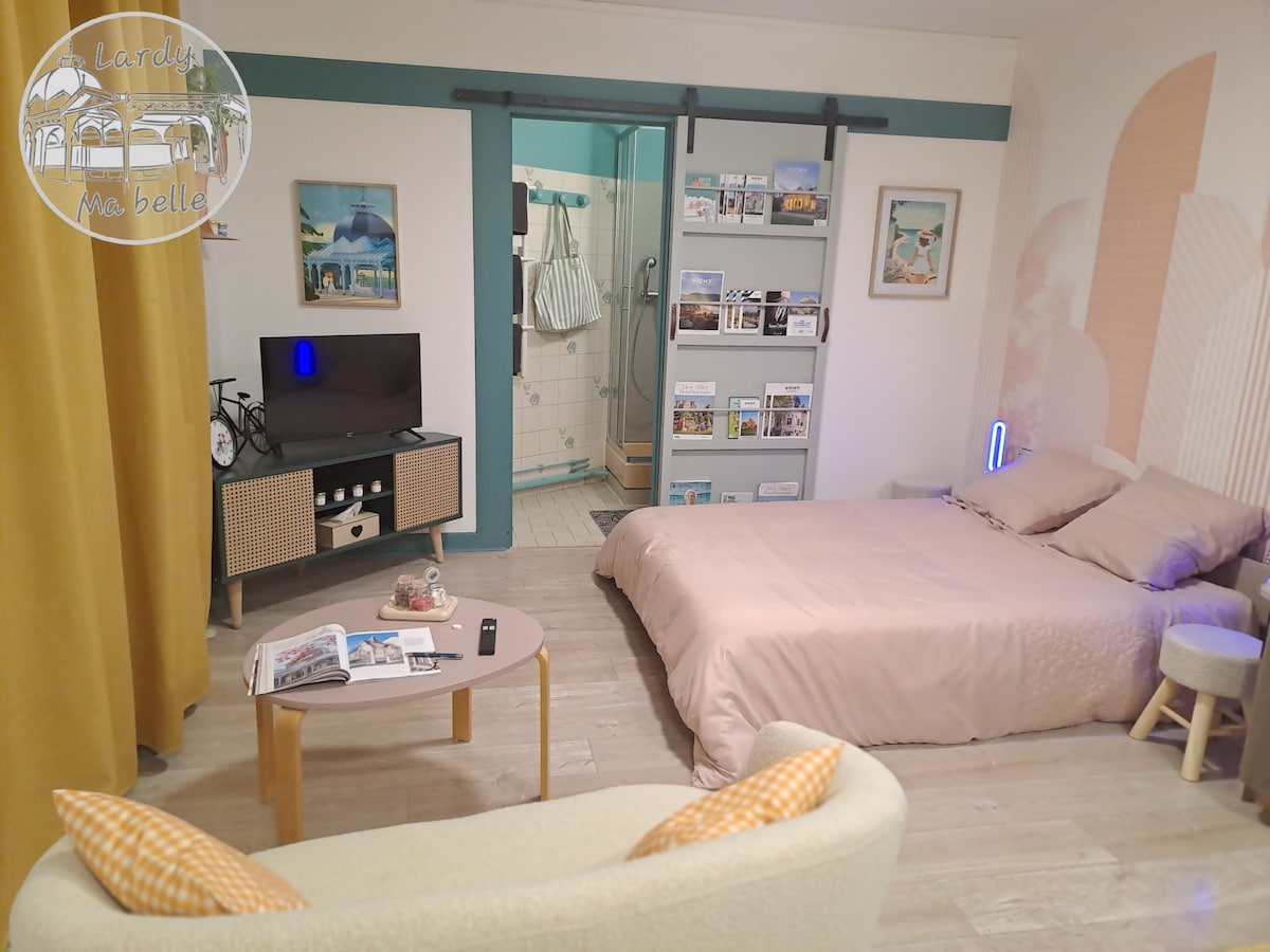 Enjoy a stylish and central accommodation, everything is within walking distance in this small medieval village, 10 min drive to the Troncais Forest, and rejuvenating walks. Homemade meals, aperitif boards, Sunday brunch on request🤗 Don't hesitate! All you have to do is put your bags down in this 70 m2 apartment, equipped kitchen, living room, 1 large bedroom and a small bedroom for 2 children with pull-out beds. Quality services, 160 cm bed and Emma mattress. 20 minutes from the A71 highway.