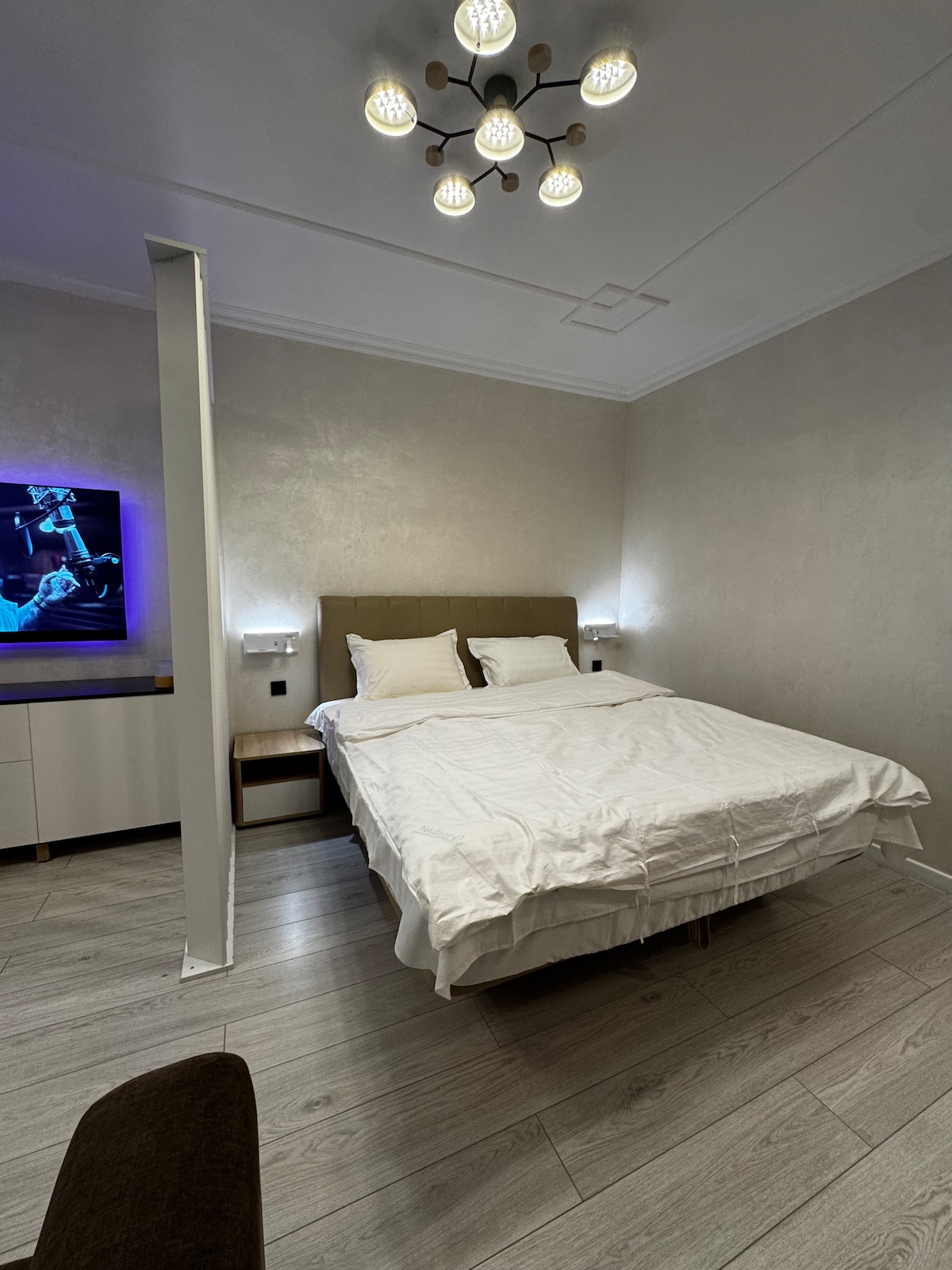 A cozy, new, chic apartment in the very center of Almaty. In the elite residential complex METROPOLE. Prestigious cafes and restaurants, medical centers and pharmacies are nearby. All the attractions of Almaty are nearby. The apartment is new, comfortable, and quiet. Very spacious and comfortable. The apartment has everything you need for a comfortable stay. The apartment is very quiet and cozy. We will be glad to meet you 🤗