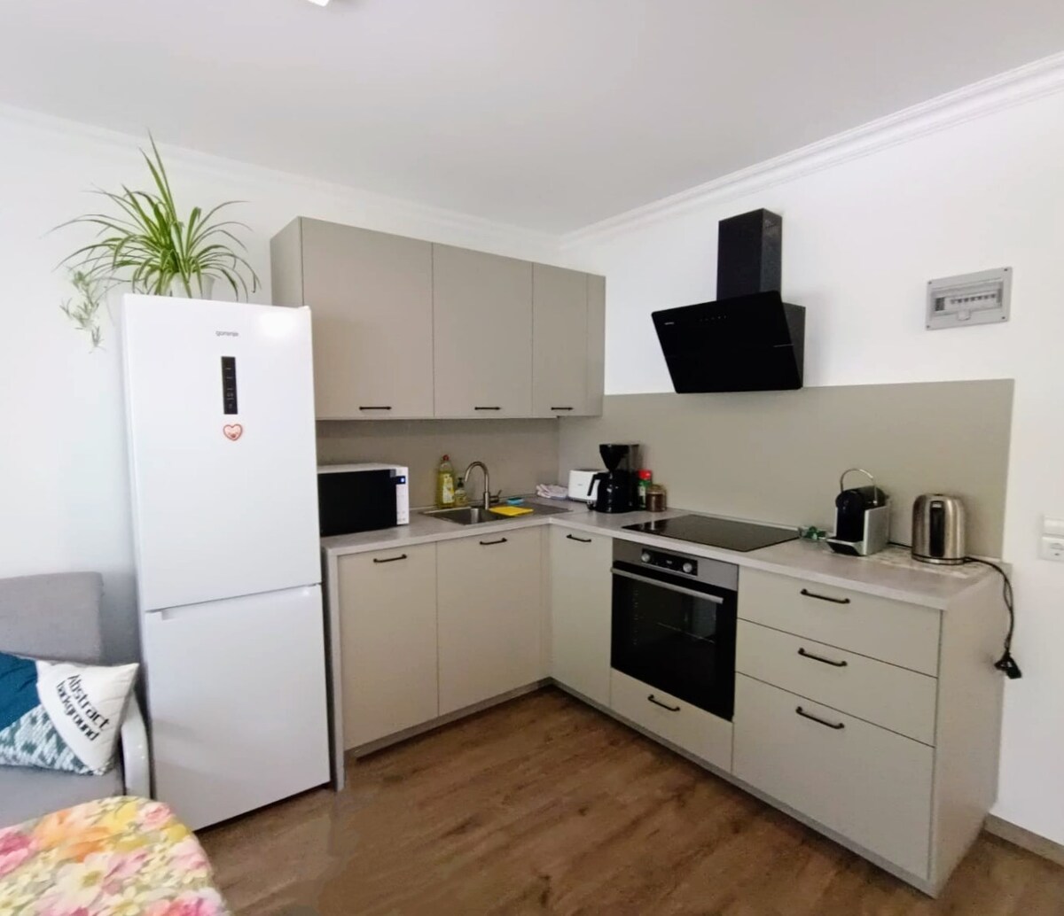 Stylish and Modern Two-Room Suite This stylish two-room suite is ideal for up to 4 guests and 1 child, located by a beautiful lake near Trier and Luxembourg, at the crossroads of Germany, Luxembourg, France, and Belgium — perfect for exploring castles, museums, and nature. The suite (approx. 40 m² plus a full-length balcony) features a modern kitchen, two single beds (90×200 cm), one bunk bed (90×200 cm), and a sofa bed (183×150 cm) — all enhanced with a memory-foam topper for extra comfort.