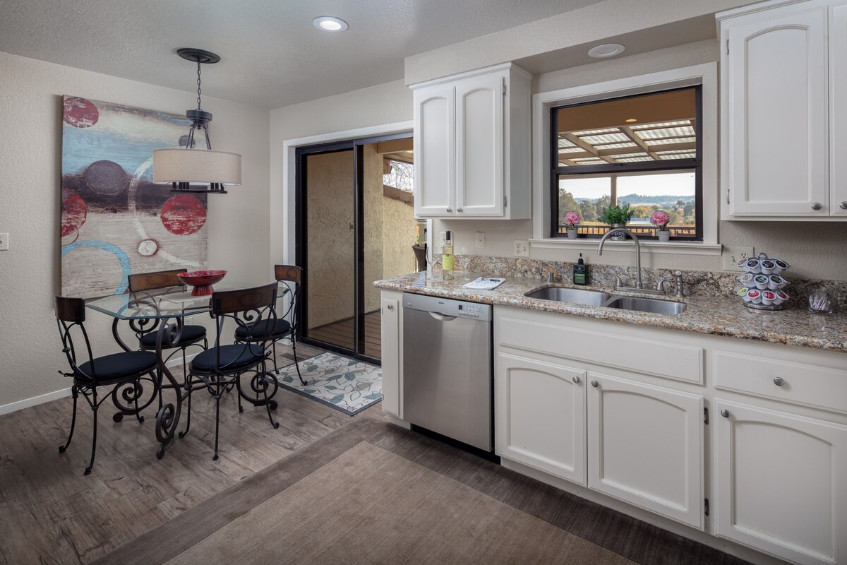 The perfect place to getaway or to “work at home” away from home in the foothills of the Sierra Nevada Mountains, minutes away from Jackson and Sutter Creek. Relax and enjoy the beautiful views of the valley in your own 1150 sq. foot 2-bedroom guest house complete with a full kitchen, living room with a wood stove fireplace, smart TV, WiFi, desk, private bath and deck with a grill. Relax by the private pool during the summer months 10AM-7PM. You will be surrounded by nature, peace & quiet.