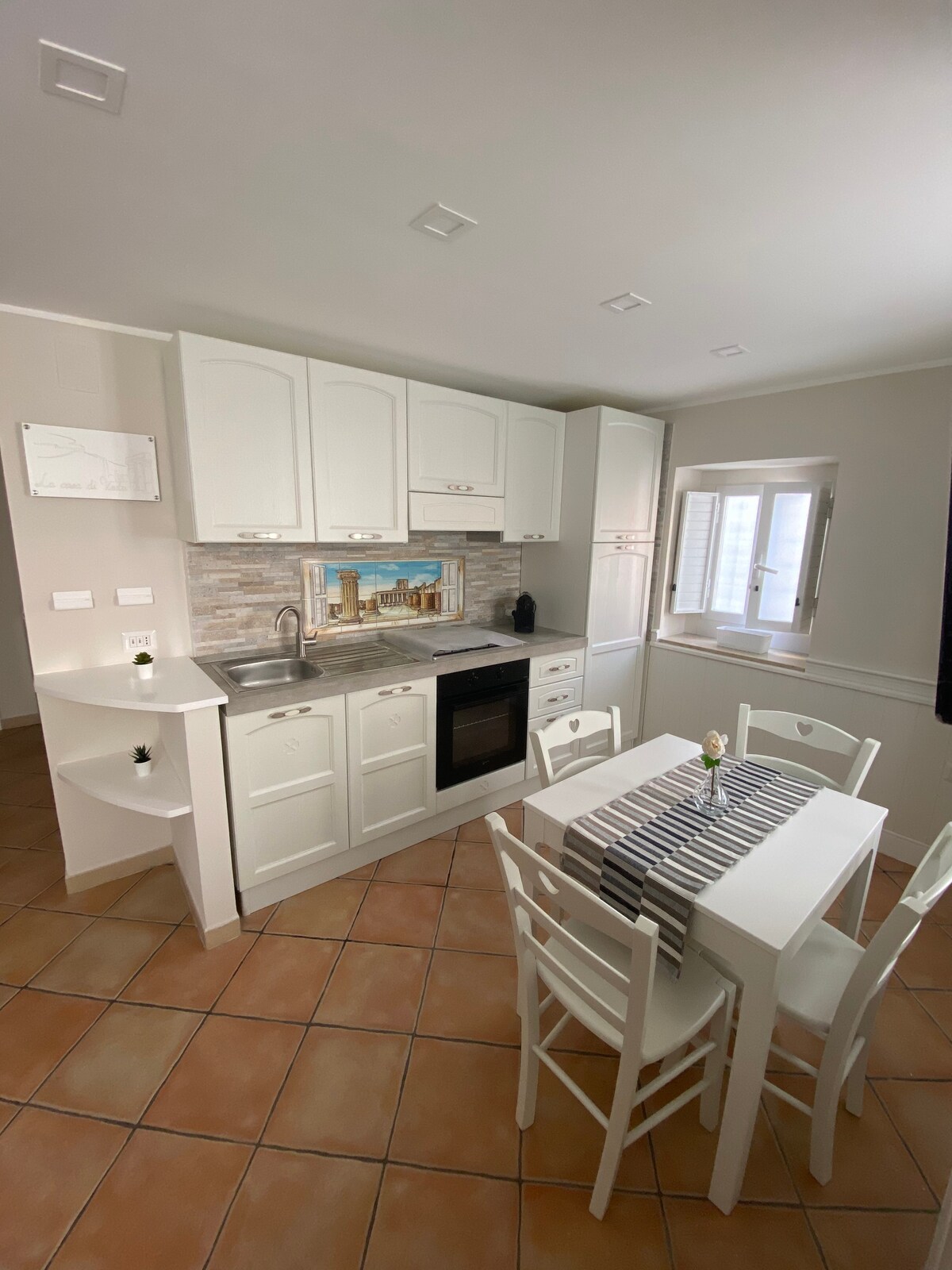 BBHome is a charming apartment, composed of a little entrance hall, a quiet and intimate bedroom, a comfortable bathroom, a very bright kitchen, an useful utility room, a romantic and spacious living room, a large terrace with a breathtaking overwiew and a personal parking. Provided with all the comforts (oven, washing machine, hair dryer, iron, flat screen Tv, hot/cold air conditioning, Wi-Fi, parking) to make unforgettable your stay in the Amalfi Coast. Located in the private complex " Madonna Arch Park ", accessible by car from the 163 Amalfi Highway ( SS 163 ) after 1,5 km from Vietri sul Mare or by walking 40 steps from Marina di Vietri. BY CAR: from Vietri sul Mare, follow the signs to the "Amalfi Coast" and take the State Road 163 Amalfi (SS163) for about 1.5 km; on the left, the sea side, (after the Restaurant "La Voce del Mare", at the Restaurant Wine Bar "Fish" and the road mirror), take the dead end road Madonna dell'Arco till the end where there is the white gate access to"Madonna dell'Arco Park." Enter, go up on the left until the house D and park your car under covered porch, No 1 reserved. Note: The "Madonna dell'Arco" street is narrow, two-way, typical Amalfi Coast road, therefore, please notify if you have very large cars or difficulty driving uphill and/or downhill. You could alternatively park in Marina di Vietri and going home by walking through the up/down steps. In the latter case, prior agreements, I would bring you home by car to load/unload luggages. ON FOOT: from Vietri sul Mare, cross Matteotti Square and go down to Marina di Vietri following the downhill road in direction "Beaches/Stadium/Carabinieri". Right at the end of the steep road (passed the Carabinieri station) you will find a first footbridge right in front of you. Turn left and then right over the second bridge and keep going to the end of the road (on the right looking at the sea - Via Nuova Marina) where you will find a public parking space on payment. (Free public parking is on the downhill road Via Osvaldo Costabile). On the right, opposite the Lido " Il Risorgimento ", there is the staircase to " Madonna dell'Arco Park ", where you will find the white gate to BBHome. BY TRAIN: The nearest railway station is Vietri sul Mare (2.5kms away) served only by local/regional trains. The main Railways Station is Salerno (7 Kms away) served by high speed trains (booking required) as well as IC and regional trains. From Salerno to Vietri by train: Regional trains from Salerno to Vietri take roughly 7 minutes and run hourly (less frequently on Sundays or Holidays). BY BUS: Anyway, from Salerno, we recommend the SITA SUD buses to Amalfi instead (bus stop at Corso G. Garibaldi crossing via Barretta). Tickets can be purchased on the station concourse or the tobacconist shop at the corner of the station square. The buses run hourly and take around 20-25 minutes depending on traffic. Please, ask the driver to stop at "Voce del Mare-Fish" stop (requested stop). Via Madonna dell'Arco is literally across the road from the stop. Walk down for roughly 500mt (after the church) and stop at the white gate for BBHome. From Vietri sul Mare Railways Station: walk down to the main square (Piazza Matteotti) and take the SITA SUD bus to Amalfi. Tickets must be purchased before boarding at the newsagent shop on Vietri's main street or at the ceramic shop D'Amico on Piazza Matteotti. The ride will take only a few minutes (1.5kms). Please ask the driver to stop at "Voce del Mare-Fish" stop (request stop). BY PLANE: The nearest airport is Naples. From there you can take the shuttle bus (called Alibus) to the main railway station (Napoli Centrale). Tickets can be purchased on the bus. From Naples station trains run frequently to Salerno. From Salerno Railways Station take the SITA SUD buses to Amalfi (as before). BY TAXI: taxis can be found outside Salerno Railways Station (about 20 euro one way). Please, note that there are no taxis outside Vietri Railways Station. TRANSFERS: From Naples Capodichino Airport you can arrange a private transfer ( extra service ). We can also arrange a pick-up or a taxi from Salerno or Vietri sul Mare Railways Stations on request (extra service). Please, contact us in good time before arrival, indicating the time of arrival and departure of the train. Entire apartment layout. With parking and private terrace. Barbara, if required, is available to guests for the whole stay for information or emergencies. This hillside apartment is in a historically interesting area. It's walking distance to Marina di Vietri, where there are restaurants, bars, shops, and boat rentals. It's not far from famous Amalfi Coast sites and the town of Vietri sul Mare. The Campania Region offers many natural, historical and artistic beauties that must definitely be experienced! Barbara is available for any kind of information and suggestion. The panoramic terrace, the reserved parking space, the access to the sea on foot and the connection to the Amalfi Coast road by private car or public transport will make your stay intimate, independent, relaxing and comfortable. Note: The BBHome access road, "Madonna dell'Arco" Street, is a narrow, two-way, typical of the Amalfi Coast road, therefore, please, notify if you have very large cars or difficulty driving uphill and/or downhill. You could alternatively park in Marina di Vietri and going home by walking through the up/down steps. In the latter case, prior agreements, I would bring you home by car to load/unload luggages.
