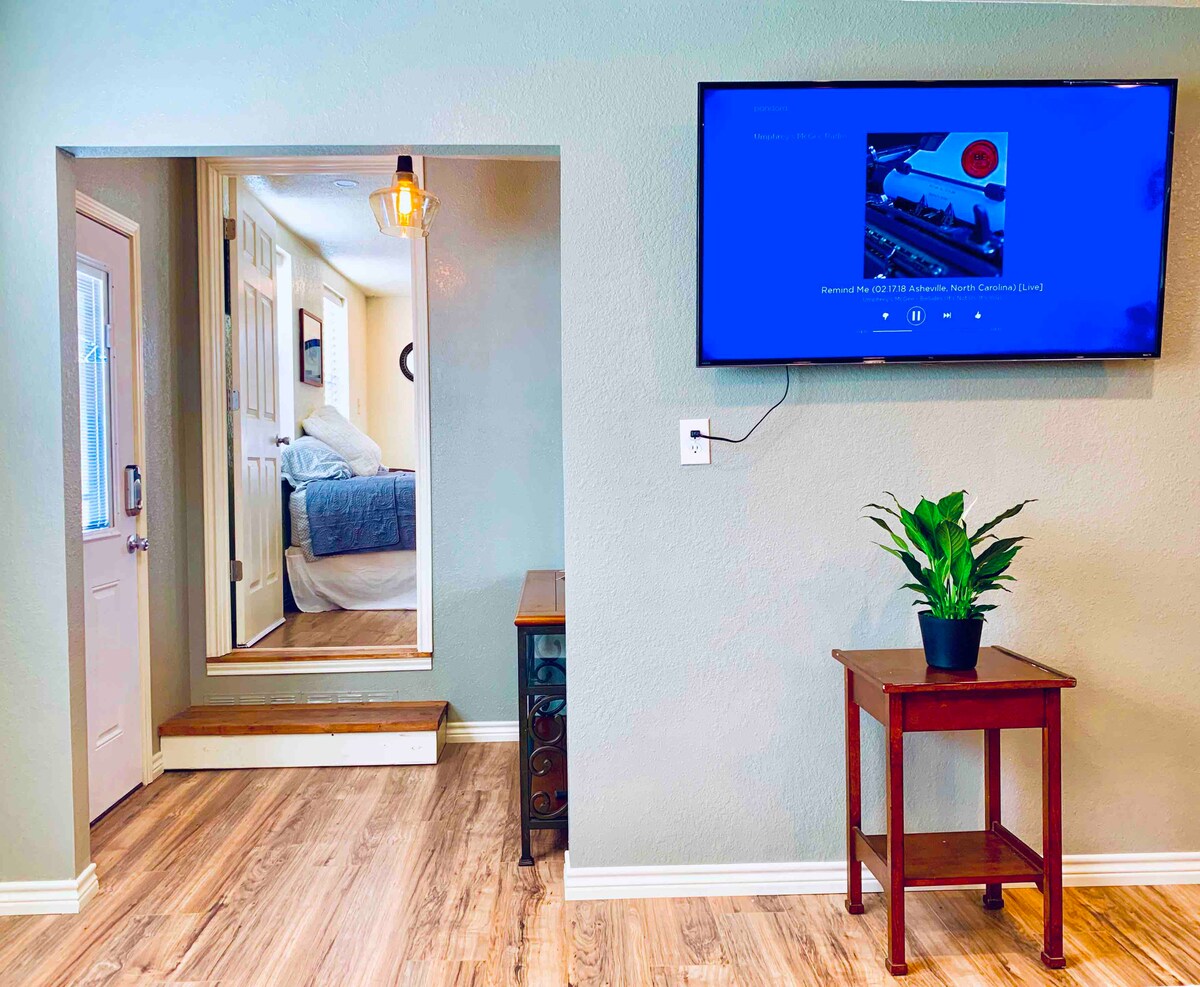 Welcome to your cozy escape in Amarillo! Our charming central flat offers comfort and style for up to two guests. Located minutes from Route 66 and vibrant dining, it's the perfect retreat. Enjoy your private patio and experience our top-rated hospitality, earning us a 4.95-star rating. Guests love our home's comfort and reliability. Whether you're here to relax or explore, book now for a memorable stay in the heart of Amarillo! - 4 blocks off I-40 - near RT. 66 - DISCOUNTS!!