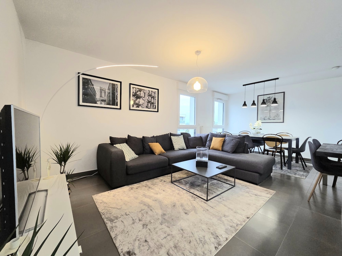 Au cœur du quartier piétonnier Chablais Parc, bel appartement cosy & lumineux, avec balcon d’angle de 14 m². Parking privatif & sécurisé. Résidence calme, label BBC, exposition sud ouest. Linge de lit & de toilette fourni. Commerces et cinéma au pied de l’immeuble. À 4 min à pied de la gare d’Annemasse, qui relie Genève toutes les 15 min via le Léman Express. Accès aéroport depuis la gare avec un changement à Cornavin (Suisse). Meublé de tourisme classé 3★ Enregistrement n°740120000370E