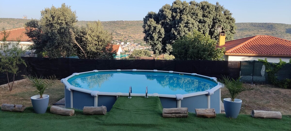 plot with sunlight, well water (not drinking water), you can park on the same plot with a house consisting of (kitchen: fridge, oven, microwave, sink) a dining room with a table for 12 diners, 3 bedrooms, 1 bathroom (with sink, faucet, shower) and a living room with fireplace and 3 sofas/bed for 6 other people. The exterior has a ping-pong table, a porch where you can be quiet, a beach bar, paella pan, gas barbecue, most importantly BARBECUE AND POOL 4.60m diameter