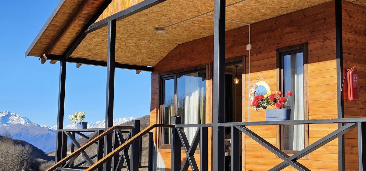 Mtiskari is a cozy cottage surrounded by pine trees, with stunning mountain and river views. It's a peaceful, private space with easy road access, perfect for relaxing or enjoying music. Both floors have balconies, and the large veranda is great for outdoor lounging. Everything you neeed for a comfortable nature escape.. Great for families or couples seeking nature, quiet and space.
