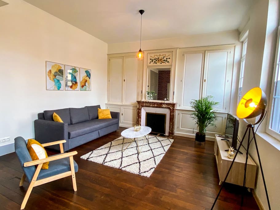 🏠 Charming 1-bedroom apartment with an antique Louis XV-style marble fireplace, peaceful, 66m² on the ground floor. 📍 Located in the hyper center of Amiens, a 2-minute walk from pedestrian streets and 7 minutes from the train station. 🅿️ You can park for free on the street or at the circus parking just 50 meters away. This luxury apartment is nestled among shops, restaurants, bars, cinemas, and the lively atmosphere of Amiens. Ideal for a delightful stay or for working in tranquility.