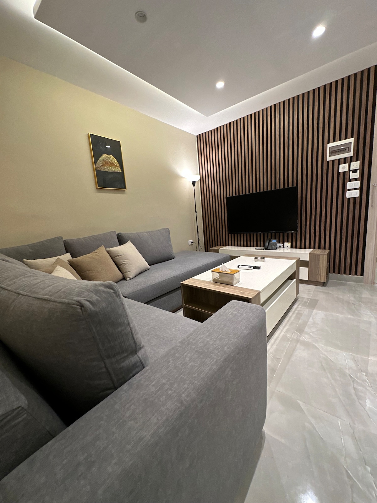 This trendy apartment in downtown Amman is perfectly located, just a short walk from both the city center and Paris Circle. It has three bedrooms, two bathrooms, a comfy living room, a nice kitchen, and a lovely balcony , two bedrooms have great views of Old Amman. With modern furniture and a cool vibe, it’s the ideal place to stay in the heart of the city. -it’s on the first floor without elevator.