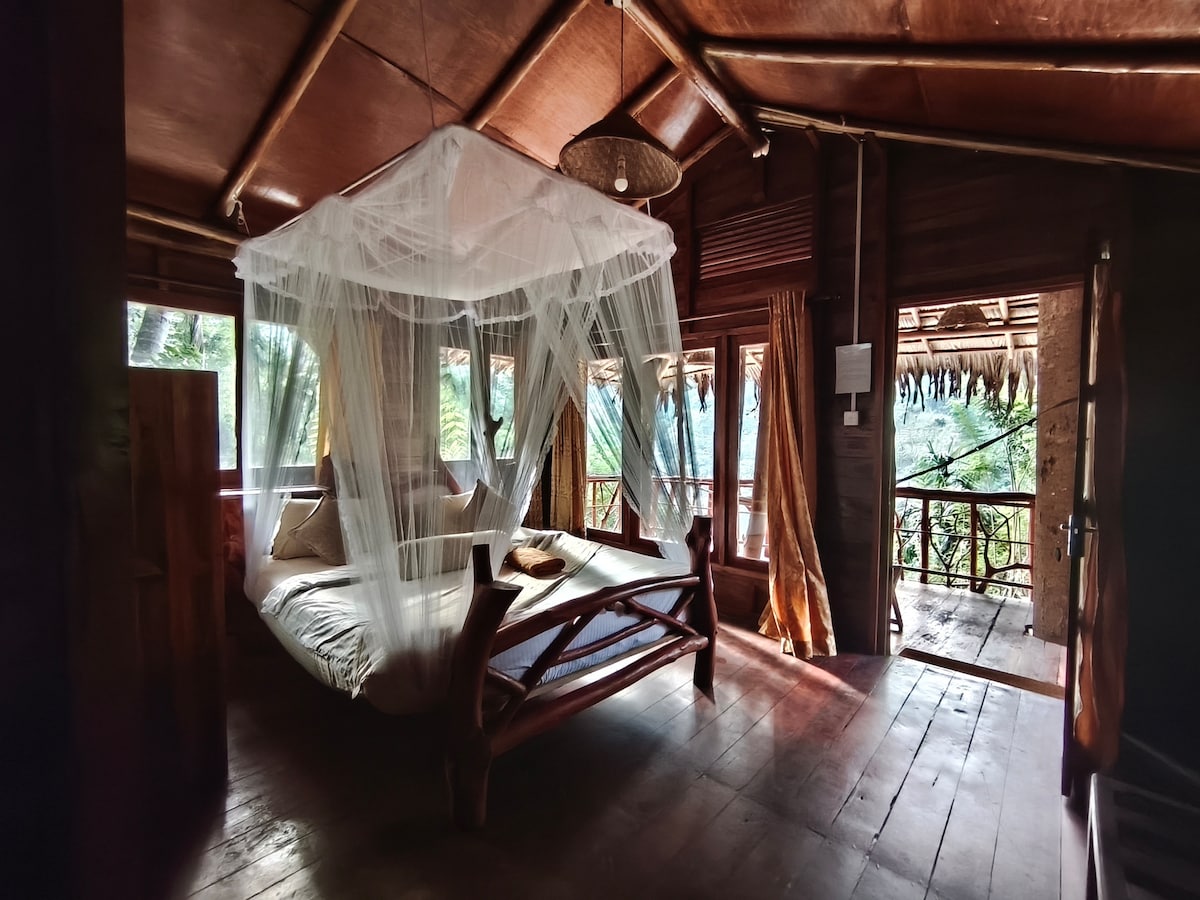 Independent Treehouse for 2 guests Walking distance to waterfall, Ella Rock, Temple & Cave. Around the treehouse, we've also 1 appartment, 2 cabanas, 3 duplex and our own traditional restaurant. ***the treehouse is NOT in the CITY CENTER ***