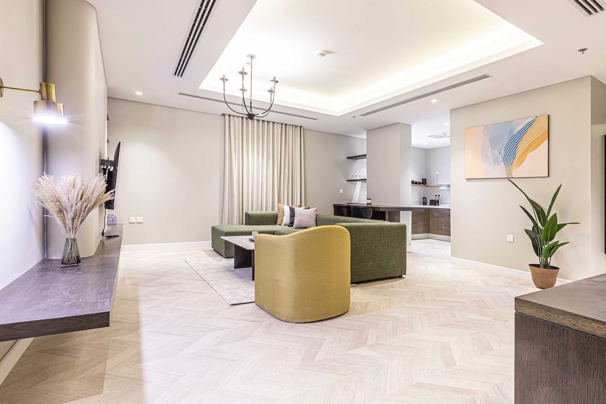 Discover a stylish bohemian retreat in Riyadh — a cozy 3BR apt designed for groups, families, and business travelers. With warm décor, spacious interiors, and access to amenities, this home blends comfort with convenience just 5 minutes from Riyadh Convention Center (RICEC). Unwind in a design-forward living space, enjoy restful nights with premium bedding, or take advantage of the pools and gyms. Whether you’re here for work or leisure, this apartment makes every stay feel easy and memorable.