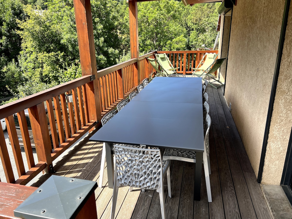 Independent apartment, furnished under our house. Enjoy optimal comfort and warm mountain decor, with the pleasure of a wood-burning stove for cozy evenings. Nestled in the heart of nature and without neighbors, this place guarantees you a quiet and peaceful stay. The large openings allow you to admire one of the most beautiful views of the Hautes-Alpes! Outside you have a large private and protected terrace (equipped with sofa, table and barbecue).