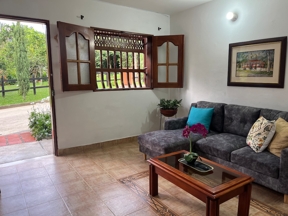 Beautiful apartment with spectacular mountain view, just 3 blocks from the principal park of Jardin. Surrounded by nature and very close to most of the tourist attractions of the town, wake up with the sound of birds and the river, this accommodation has plenty of space for you to enjoy with your family, Wifi, hot water and fully equipped kitchen.