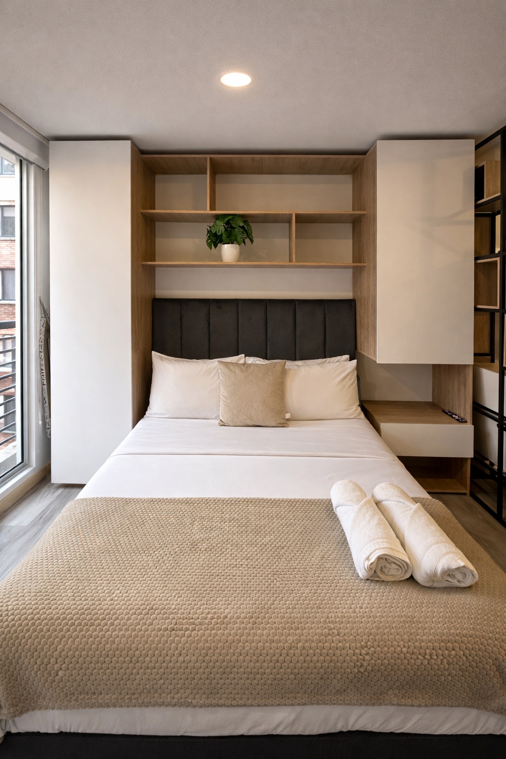 Disfruta de nuestro apartamento a tan solo unos pasos de la exclusiva Zona T. Aquí encontrarás el equilibrio perfecto entre la energía de la ciudad y un refugio tranquilo para descansar. Este espacio ha sido diseñado para ofrecerte una experiencia cómoda y funcional, con detalles pensados para que te sientas como en casa. Desde una cama confortable y cocina equipada, hasta un ambiente sereno ideal para relajarte o trabajar.