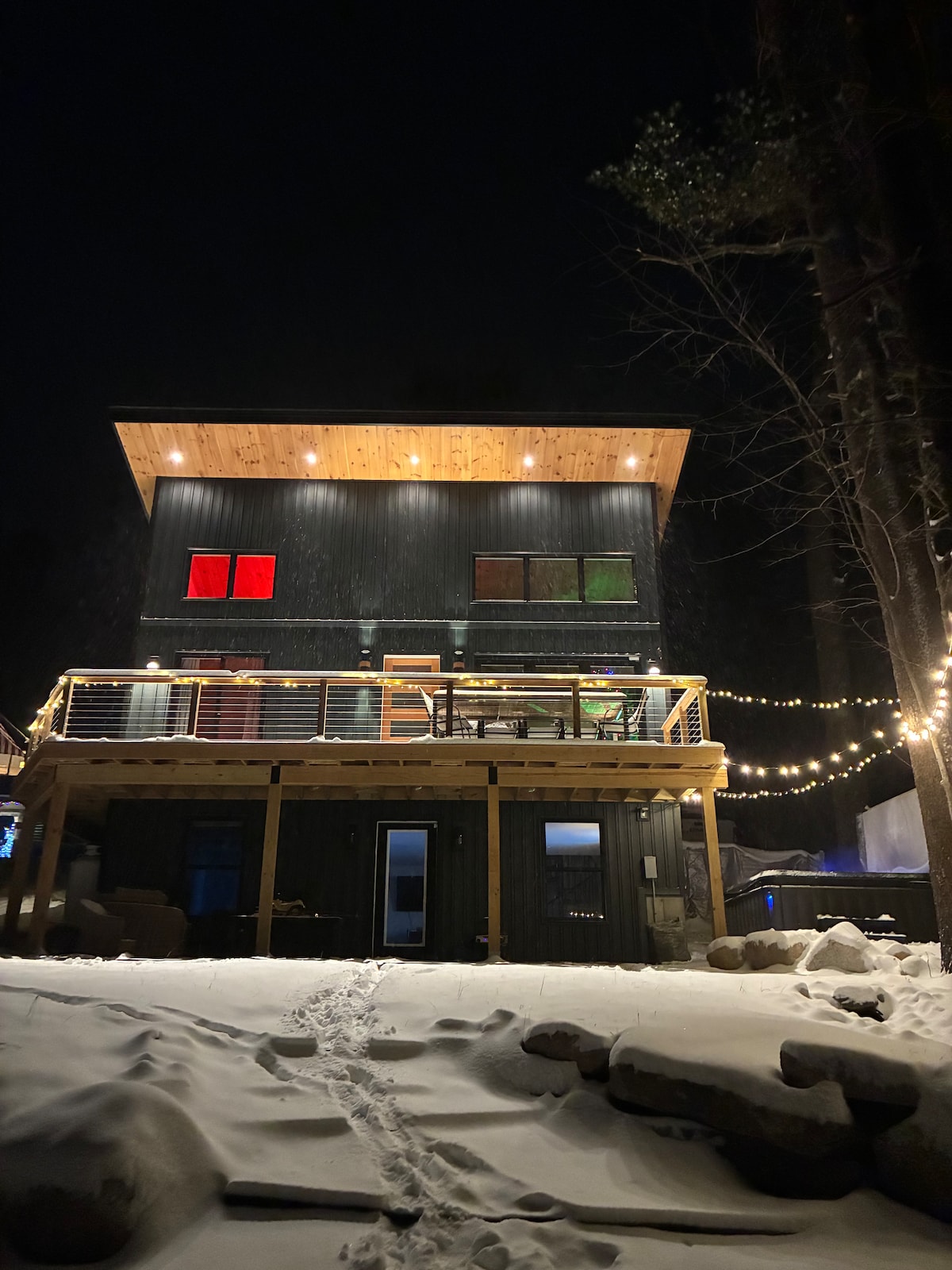 This modern lakehouse is situated on Hogan Pond in Oxford Maine. Here you can stay with all the comforts of a beautiful lakehouse built in 2020 while being feet from the water. This is a great place to vacation whether you prefer the private sandy beach, the A/C inside complete with Smart TV cable and Wifi, or the hottub! Sip a drink at the bar while watching the game or use the grill on the deck but be sure to use the built in sound system to play your music throughout the house and deck.
