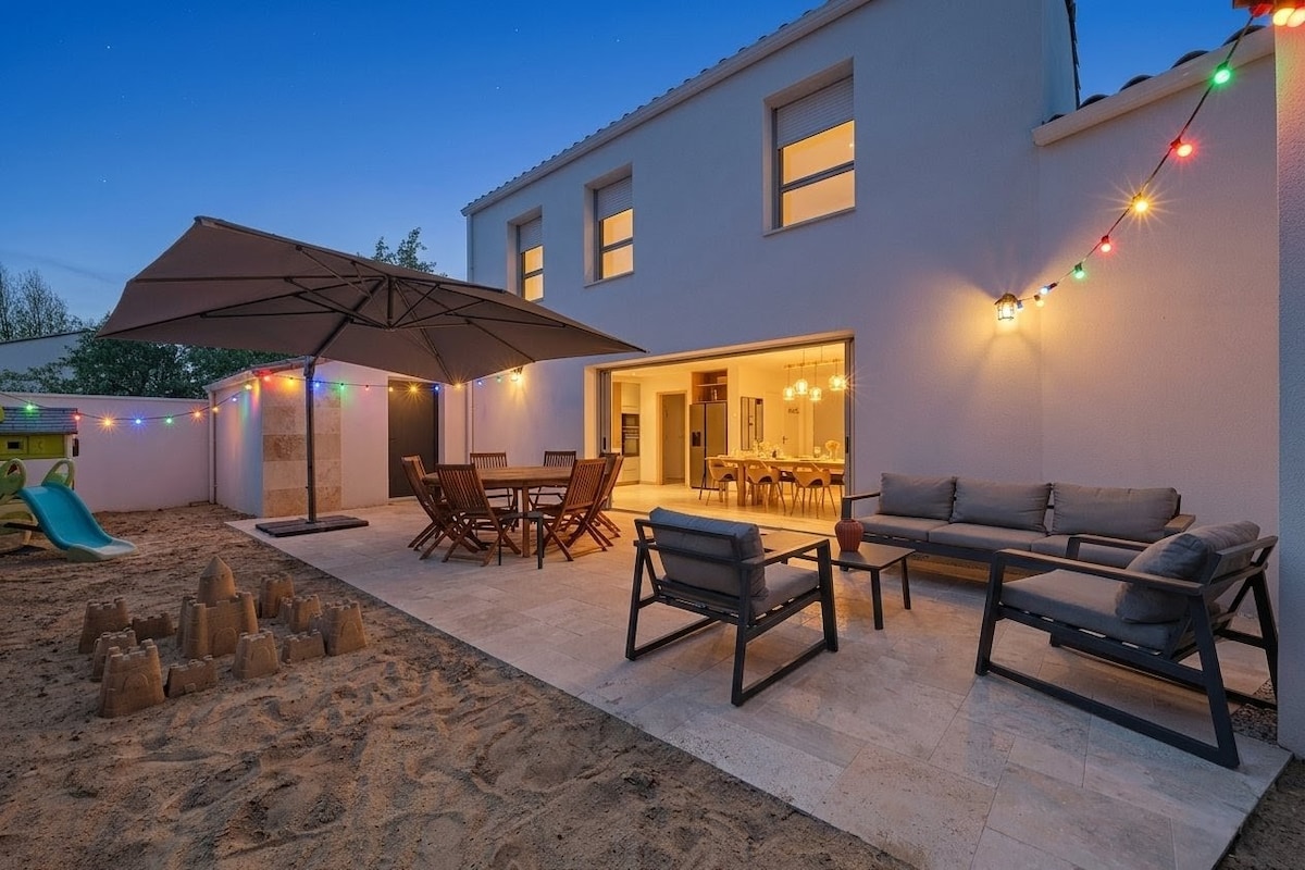 🌊 A 2-minute walk from the beach in La Tranche-sur-Mer, enjoy a bright family home of 97 sqm, accommodating up to 8 people. -> Beds will be made upon your arrival, and linens and towels will be provided 🧺 Three comfortable bedrooms (2 queen beds, 1 double bed) including two with private shower room. Fully equipped kitchen, high speed Wifi, private parking. Ideal for families or friends, close to shops and restaurants within walking distance.
