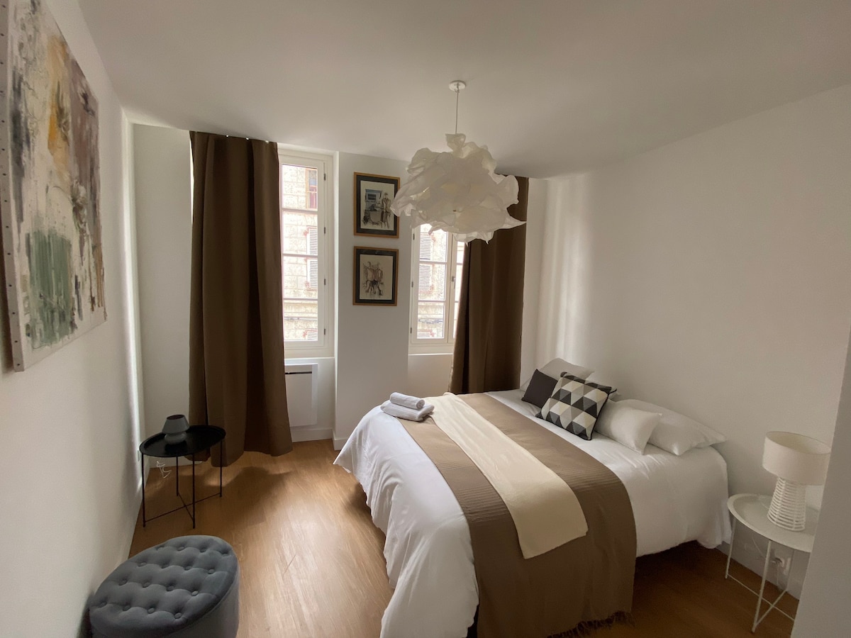 Enjoy a stylish, cozy first floor (20 steps) accommodation located in the city center of Cognac. Nearby you will find all the shops necessary for your stay, the covered market, the pedestrian streets, the old Cognac.