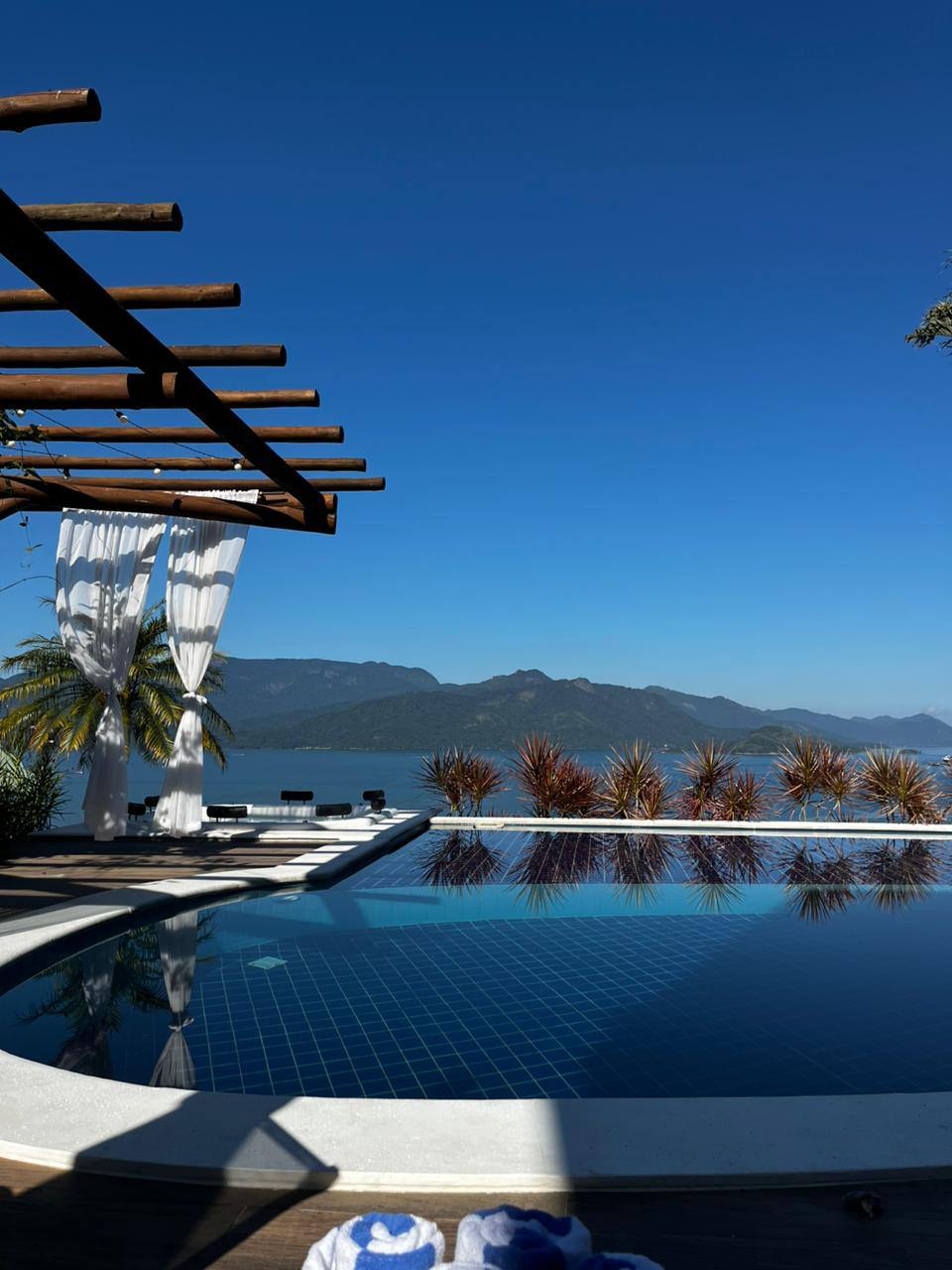 Rustic and charming house in Angra with a breathtaking view and access to a quiet private beach, perfect for families! It accommodates up to 10 people and offers a maid included during the stay (except Christmas, New Year's, Carnival and Holy Week). Enjoy a heated pool and Jacuzzi overlooking the ocean, a complete gourmet area, barbecue, pool, retro video game and board games. There are 3 comfortable suites in an environment that unites comfort, leisure and tranquility.