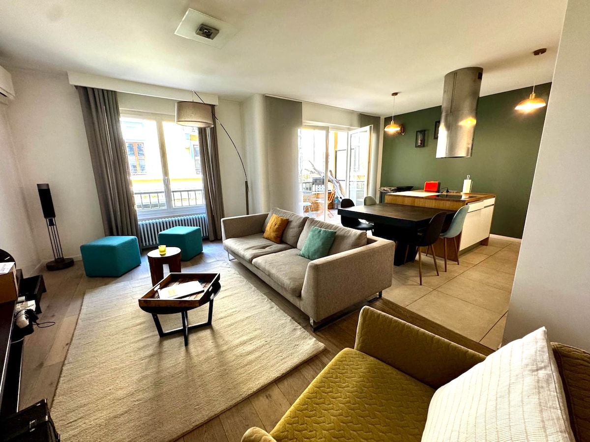 Fully renovated by French designer C. Combes in 2024. Top floor with wrap around terrace to see the mountains. Air-conditioned for hot summers. Located along the Thiou River (calm 8min walk to Old Town of Annecy). Enjoy a large living area with a fully equipped kitchen, 2 bedrooms, a large bathroom with waterfall shower for 2, and separate toilet. Equipped with a dishwasher, washing machine, and fast Wi-Fi. Walking distance to bakeries, restaurants and the lake. Garage and 2 bicycles.