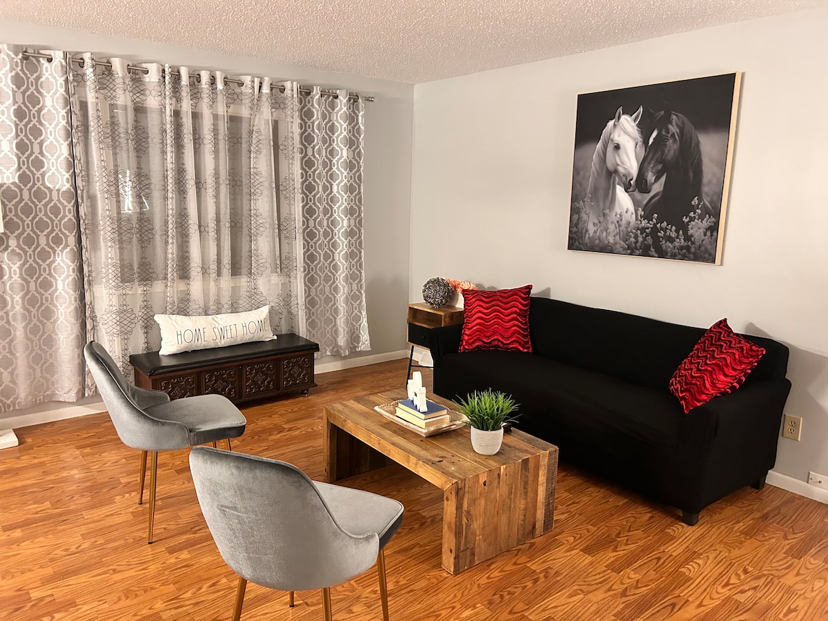 Visit a fun(ky) stay in my uniquely decorated two-bedroom townhouse nestled in a cul-de-sac near Berwood Park. Enjoy the tranquility of nature with easily accessible hiking trails just steps from your door. Bikes are available free of charge. My townhouse is ideally located for exploring the Twin Cities and beyond, with St. Paul just 15 minutes away, Minneapolis and the MSP airport 20 minutes away, White Bear Lake is only 7 minutes away, and Stillwater + Hudson are just a short 25-minute drive.